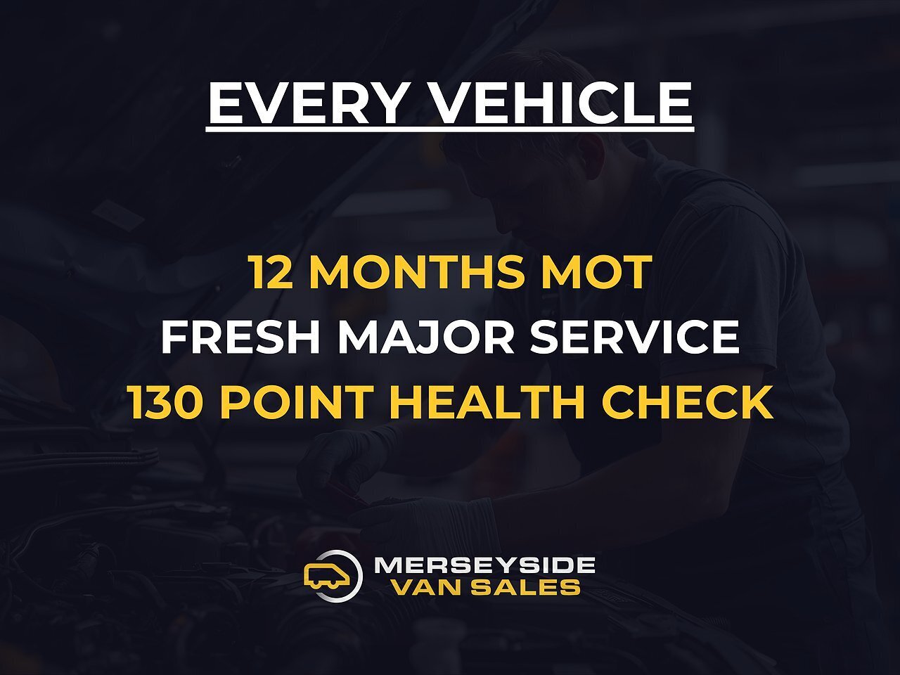 At Merseyside Van Sales, every vehicle undergoes a rigorous 130-point inspection to ensure it meets our high standards for quality and reliability. As part of our commitment to customer satisfaction, we include a complimentary 3-month warranty with A1 Approved on every vehicle we sell, unless otherwise stated. In the unlikely event that an issue arises, A1 Approved handles claims swiftly and professionally, ensuring a hassle-free experience. For those seeking additional coverage, we also offer extended warranties of up to 12 months at highly competitive rates. Speak with our sales team to explore your options and enjoy added peace of mind with your purchase.